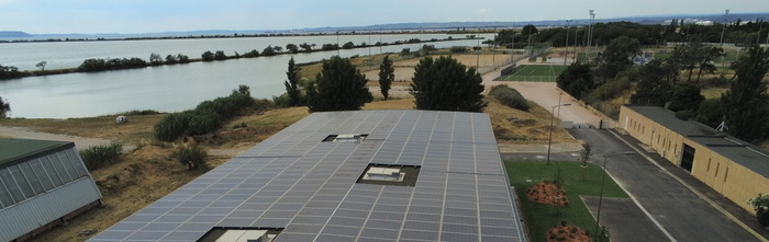 Situé sur la commune de Marignane, l’installation d’une centrale photovotaïque a permis la rénovation de la toiture de ce gymnase au bord de l’étang du Bolmon.