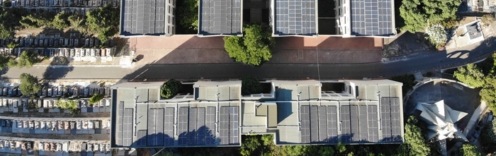 Une centrale solaire est installée sur les toits de la Cathédrale du Silence du cimetière Saint Pierre à Marseille. Cette centrale permet de produire une électricité propre et locale. Lors des travaux, les toits ont été rénové afin d’assurer l’étanchéité pendant toute la durée du bail.