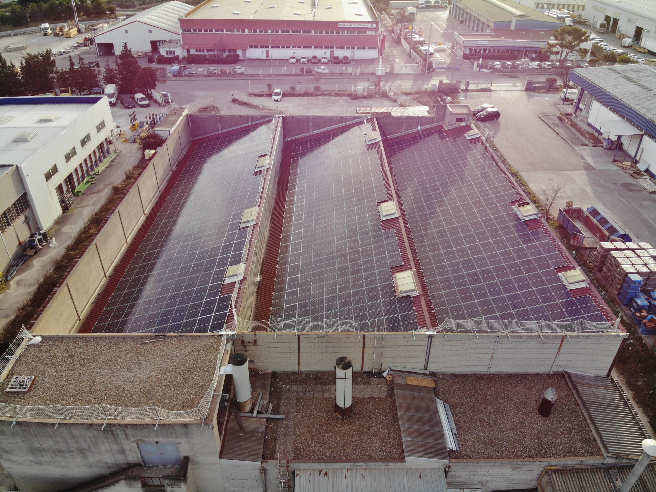 Désamiantage et création d’une centrale solaire sur les toits d’une usine de revêtement électrolytique des métaux à Vitrolles, en zone proche aéroport.