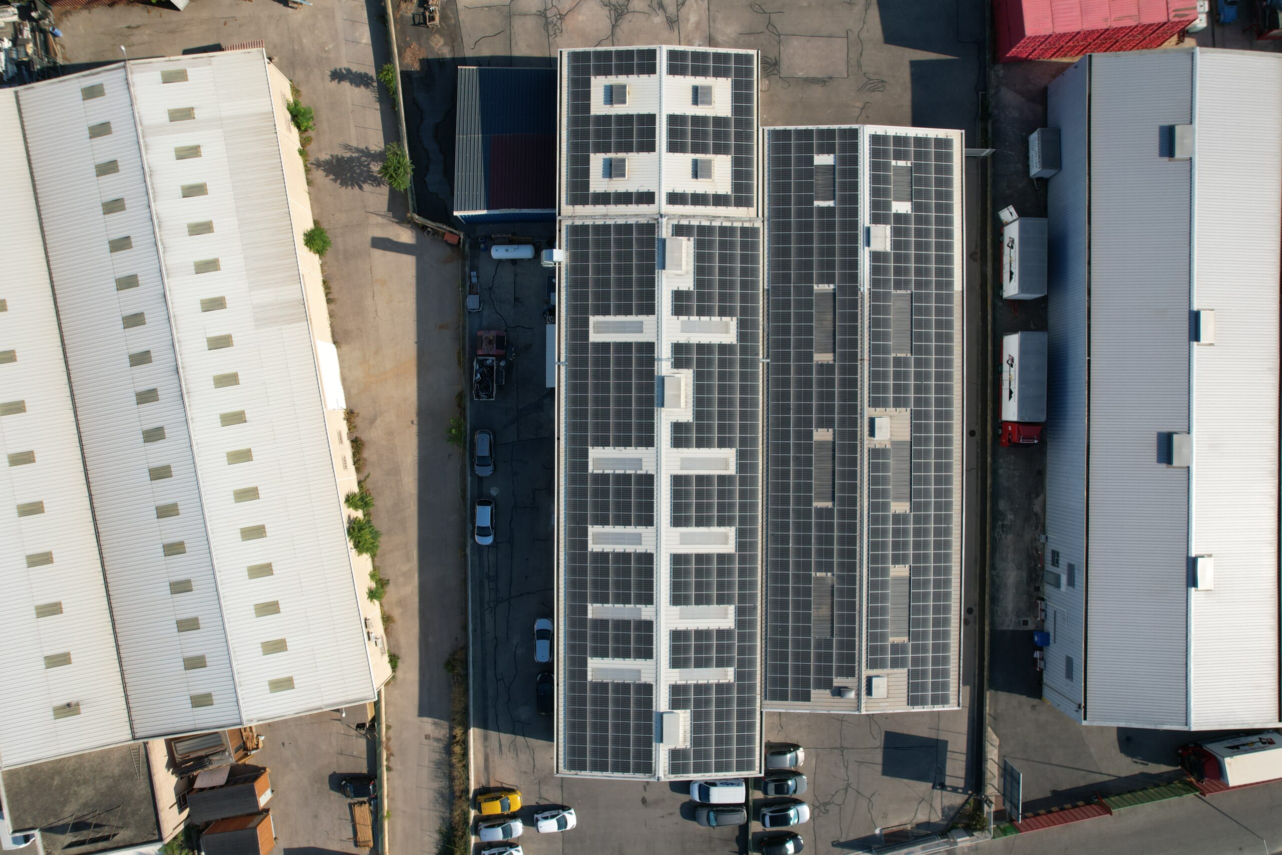 Installation de panneaux photovoltaïques en toiture d’un bâtiment commercial (entreprise de cosmétiques et atelier de carrosserie) à Aubagne.